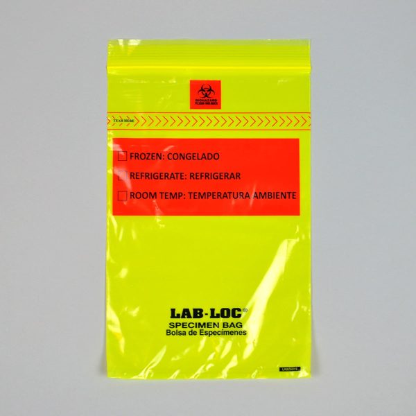6″ x 9″ 1.75 mil Lab-Loc® Specimen Bags w/ Removable Biohazard Symbol – Yellow Tint, 1000/CS